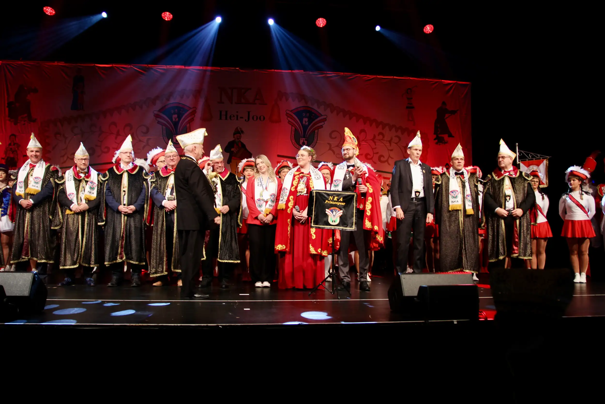 In bester Stimmung eröffnete NKA-Präsident Karl Albert den bunten Reigen an Programmpunkten der NKA (Neunkircher Karnevalsausschuss) Gemeinschaftssitzung in der Neuen Gebläsehalle. Mit vollem Elan marschierte der Fanfarenzug der KG Rote Funken in die Narrhalla und stimmte mit wohltönenden Klängen das närrische Volk auf das Kommende ein. Nach der obligatorischen Begrüßung durch den Präsidenten erhoben sich alle von ihren Plätzen um dem Neunkircher Prinzenpaar Jan II. und Selina I. zu huldigen, die in Begleitung der Funkengardisten, Ehrengarde, sowie den Vertretern von BDK, VSK, den Senatoren, Garden und Vereinspräsidenten zu ihrer letzten Rede auf einer Sitzung der Session antraten. In einer rührenden Rede gedachten die Beiden der Zeit von der Inthronisierung bis zur NKA-Sitzung und boten einen Ausblick auf die noch folgende Zeit bis zum 11.11., dem Tag an dem dann die Entthronisierung folgt. Mit einem wunderschönen Tanz ehrte dann die Aktivengarde der Hangarder Brunnebutzer „sein“ Prinzenpaar, denn der Verein hatte in dieser Session Jubiläum und stellte das Neunkircher Prinzenpaar. Emotional wurde es auf der Bühne ebenfalls bei der Ehrengarde des KV Eulenspiegel, wobei Karl Albert betonte, dass auch Mitglieder anderer NKA-Vereine der Ehrengarde angehören und es gerne noch andere Bewerber geben könnte aus den Vereinen. Mit ihrem Lied „Fasnacht ist Emotion“ bringen die Gardisten immer wieder Gänsehautfeeling zu den Narren. „Auf der Kreuzfahrt ins Glück“ befanden sich in der ersten Büttenrede des Abends dann „es Lisje Saubacher“ alias Prisca John und „Elvira Glockenhobel“ alias Katja Hobler (Hangarder Brunnebutzer) und beide ließen kein Auge trocken. Leonie Knoll, ihres Zeichens Aktivenmariechen des KV Eulenspiegel tanzte sich mit einem sehr schwungvollen Tanz in die Herzen der Neunkircher. Und schon ging es in die erste Schunkelrunde mit der musikalischen Darbietung der Stimmungskanone Eva-Maria Forster. Als großartige Tänzerin zeigte sich Noemi Ruffing (Aktiventanzmariechen des KKW), die einen superschönen Tanz mit akrobatischen Elementen auf die Bühne zauberte. Um die Politik aus der Welt, dem Land und der Stadt drehte sich dann die Büttenrede des „Stadtschreibers“ Michael Schley (Rote Funken). Tänzerisch schloss dann die Funkengarde der KG Rote Funken mit einem großartigen Marsch auf und im Anschluss gab es den Schautanz XXL (KG Neinkerjer Plätsch) unter dem Motto „4 Elemente“, der die närrischen Gäste beeindruckte. Mit vier gut dargebrachten Liedern präsentierte sich die Musikgruppe Hörsturz des KUV Blau-Gelb Wiebelskirchen unter neuer musikalischer Leitung. Leider konnte Franziska Dellwing (Aktivenmariechen des KUV und Vizesaarlandmeisterin) aufgrund einer Verletzung nicht tanzen. Das Aktiventanzpaar und Saarlandmeister Dustin Blumenauer und Elisa Mazotta (beide KKW) brachten mit ihrem Tanz eine fantastische Show auf die Bühne, die alle begeisterte. Ein Mann mit Biss betrat dann die Bühne, als vegetarischer Vampir überzeugte Josh Sieren von der KG Rote Funken in der Bütt. Zwölf junge Damen in Grün zeigten sich als Aktivengarde des KB Die Daaler mit ihrem hervorragenden und perfekt ausgeführten Gardetanz, bevor die Katastrophoniker vom KV Eulenspiegel voller Energie und Inbrunst ihr Repertoire schmetterten, was das Publikum begeisterte. Mega in Ausführung und Synchronität bot die Aktivengarde des KKW ihren Marsch dar bevor dann die Tillgarde des KV Eulenspiegel mit ihrem Tanz „Familie Heinz Becker gewinnt einen Urlaub“ glänzte. Keine Panik auf der Titanic gab es beim grandiosen Tanz des Aktivenschautanzpaares der Roten Funken (Sven Jung und Jessica Franz), die unter dem Motto „Titanic“ eine sehr schöne Darbietung zeigten. Nicht fehlen auf einer NKA Sitzung darf „De Annerschd“ alias Fiedel Wagner, der in seiner bekannt netten Art alles mögliche aufs Korn nahm. Mit einem sehr starken und mystischen Tanz unter dem Motto „Medusa“ glänzte die Aktivenshowgarde des KKW, eine bezaubernde Choreo. Die Göttin der Liebe war Eulalia Radebrecher, alias Melanie Ruffing (KKW) in ihrer Büttenrede mehr oder weniger hold, was ihrer hervorragenden Darbietung keinen Abbruch tat, eher im Gegenteil. Perfekt dargestellt haben die Mädels der Aktivengarde des KUV Blau-Gelb Wiebelskirchen ihren Gardetanz. Ihnen folgte dann der Aktivenschautanz der Daaler unter dem Motto „Das Labor“. Eine großartige Darbietung mit ganz vielen Tänzer und Tänzerinnen auf der Bühne. „Ich bin wieder hier, in meinem Revier“, hieß es dann beim „Friedsche“ (Saskia Schweitzer KUV), die aus der Reha kam und einen Schwank nach dem anderen aus ihrem Leben erzählte. Nach dieser letzten Bütt des Abends zeigte die Aktivenschautanzgruppe der KG Rote Funken ihre „Faasenachstolympiade“ bevor das große Finale mit der gesanglichen Darbietung der Konfettis ((KV Die Daaler) startete.