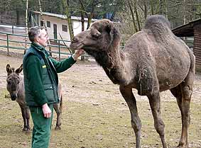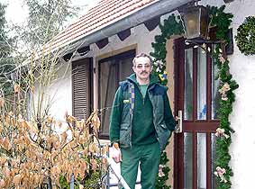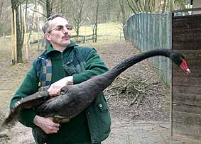 Das Haus, in dem der Tierpfleger mit seiner Ehefrau Christa seit 1976 mitten im Neunkircher Zoo lebt, ist nicht sehr groß aber urgemütlich. Nach einem kleinen Rundgang durch den Tierpark, wo es immer wieder Neues und Interessantes zu erfahren gibt, sitzen wir im Wohnzimmer der Familie Schmitt und die Liebe zu Tieren und Fastnacht ist hier offensichtlich. An der Wand hängen die vielen Orden der letzten Session, auf Regalen und in Vitrinen haben Tiere aus Holz, Porzellan und Stoff ihren Platz. In der Überzahl sind dabei eindeutig die Giraffen. Begonnen hat die Sammlung der grossen, gefleckten Tiere mit einem Mitbringsel aus Afrika – inzwischen sind es etwa 120 Exemplare. Für die Giraffen – momentan sind im Neunkircher Zoo zwei weibliche Tiere – hat der sympathische Tierpfleger, der seinen Aufgabenbereich bei allen Huftieren hat und also auch für Zebras, Ponys, Esel, Kamele, ... zuständig ist – eine besondere Vorliebe. Er erzählt von ihnen wie andere Tierhalter von Hund oder Katze. „Giraffen sind unheimlich anhänglich“, Lothar Schmidt hat manchmal Probleme Arbeiten im Gehege durchzuführen, weil ihm die Beiden, die ihn scheinbar auch sehr mögen, keinen Freiraum lassen. Mit Spannung und Freude erwartet er den demnächst anstehenden Einzug eines Jungbullen. Dass diese Tiere aber auch treu sind, konnte der Tierpfleger im Magdeburger Zoo erfahren. Dorthin war Giraffe „Charly“ von Neunkirchen umgezogen und als ihn sein ehemaliger Betreuer nach anderthalb Jahren besuchte, erkannte er ihn sofort wieder und die Freude war groß. Lothar Schmitt arbeitet seit 33 Jahren im Neunkircher Zoo und „könnte sich gar nicht vorstellen, was anderes zu machen“. Der 47jährige kann an seinem schönen Arbeitsplatz „eigentlich alles machen“ und war schon in allen Revieren gewesen – auch bei den Elefanten und Affen. Er kennt „seine“ Tiere auch beim Namen. Bei unserem Rundgang trabten einige Timor-Hirsche an den Zaun und bettelten um Futter („Die könnte man den ganzen Tag nur füttern“), die Kamele kamen auf seinen Zuruf hin aus dem Stall und einer der schwarzen Schwäne – gestiftet von Gitti und Karl Albert – ließ sich sogar für ein Foto von ihm auf den Arm nehmen. Die Hauptaufgabe des erfahrenen Tierpflegers liegt in der Aufzucht von Jungtieren. Geburten sind natürlich immer ein schönes Erlebnis. Hier fällt Lothar Schmitt spontan die eines schottisches Hochlandrindes Ende Dezember letzten Jahres ein, die er mit einer Besucherfamilie erleben durfte. Auf unsere Frage, ob er die Schönheiten an seinem Arbeitsplatz überhaupt noch wahrnimmt und zu schätzen weiß, versicherte er, dass ihm sein „Job“ viel Freude macht, auch wenn nicht immer pünktlich um 17.00 Uhr Feierabend ist. Manche Arbeiten seien halt nicht aufschiebbar. Wie kommt er mit dem „Chefwechsel“ (wir berichteten in unserer Februar-Ausgabe darüber) im Neunkircher Zoo zurecht, wollten wir von ihm wissen. Es tut ihm schon Leid, dass Dr. Brandstätter weggegangen ist, aber er versteht auch, dass dieser sich beruflich verbessern konnte. Lothar Schmitt denkt, dass der neue Direktor, Dr. Fritsch, auch gute Arbeit leisten wird. „Er ist sehr nett und hat auch das Fachwissen für seine Aufgabe hier. Ich glaube, dass er seine Ideen verwirklichen kann.“ Über die Faschingszeit nimmt sich Lothar Schmitt immer Urlaub, um seinem Verein – KV Die Daaler Neunkirchen – tatkräftig zu unterstützen. Seit 23 Jahren ist er dort aktives Mitglied. Anfangs als Elferrat, schon bald als Organisationsleiter und schließlich wurde er zum zweiten Vorsitzenden gewählt. In zwei Sessionen hat er auch schon als Prinzenfahrer fungiert – zuletzt bei NKA-Präsident Karl Albert und seiner Gattin, die als Karl I. und Gitti I. regierten. Neben den vielen Arbeiten im Hintergrund (Bühnendekorationen, Rosenmontags-Motivwagen, uvm.) war und ist er aber auch auf der Bühne aktiv: Jedes Jahr gibt es neue Sketch-Tanz-Aufführungen von und mit ihm zu sehen. Meist sind dann auch als Partnerinnen Heike Groß und Ehefrau Christa mit dabei. In der vergangenen Session hatte er „zwei Damen“ an seiner Seite, die ihm ohne Worte gehorchten. Mit zwei Puppen trat er als „Jakob-Sisters“ auf. Bei der Beerdigung der Fastnacht im „Stadtbad-Restaurant“ versuchte er als Dr. Brinkmann zu retten, was zu retten war. Im Freien Fanfarenzug 93 Neunkirchen spielt Lothar Schmitt mit Begeisterung Trompete. Begonnen mit der Trommel, lag ihm das Blasinstrument letztendlich besser. Mit dem Verein hat er das ganze Jahr über Auftritte und besonders gern wird die Gruppe bei Familienfesten gebucht. Nach unserer Neinkeijer Faasenacht besucht Lothar Schmitt gerne die „Kollegen“ in Saverne, die nach uns Karneval feiern. Dort gefallen ihm besonders die „Guggemusik“ und die vielen tollen Holzmasken. Viel Zeit für Hobbys bleibt da wohl nicht mehr? Einmal pro Woche, so erklärt er uns, zum Schwimmen gehen – das lässt er sich nicht nehmen. Außerdem spielt er Fußball und joggt gerne im Kasbruchtal. |