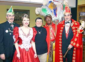 „Es war ein wunderschönes, aber auch sehr turbulentes Jahr“, berichteten uns die Beiden, als wir sie in ihrem neuen, gemütlichen Heim in Neunkirchen-Kohlhof besuchten. Ja, sie arbeiteten während „ihrer“ Session auch an den Umbauarbeiten des schönen, alten Hauses, zu dessen Kauf sie sich relativ kurzfristig entschlossen hatten. Außerdem feierten sie Ende Juni 2007 ihre Hochzeit mit riesengroßem Polterabend, Standesamt und kirchlicher Trauung. Und eine Hochzeitsreise gönnte sich das sympathische Paar auch: Es ging mit dem Kreuzfahrtschiff Aida in den hohen Norden. Von alledem schwärmen sie heute noch – oder gerade jetzt, denn „je länger man’s setzen lässt, umso schöner war’s“, erklärte uns Andrea. Gemeinsam mit ihrem Gatten Klaus Peter freut sie sich nun auf ein ruhiges Jahr und „dass alles wieder ganz normal läuft“. Im Haus sind die Renovierungsarbeiten abgeschlossen und nun wünschen sie sich einen schönen Sommer, um im neuen Garten zu arbeiten und ihn auch zu genießen. „Manchmal war’s schon sehr hektisch“, gaben die Beiden zu bedenken – schließlich feierte der NKA sein 5x11. Jubiläum und in einer solchen Session stehen natürlich mehr Termine als sonst auf dem Plan. Aber sie haben das alles wunderbar gemeistert und so fiel es nicht nur Prinz Peter II. und Prinzessin Andrea II. am 11.11.2007 schwer, die Insignien abzulegen. Sie waren für das närrische Volk ein Prinzenpaar der Herzen. Und so hob sie auch NKA-Präsident Karl Albert als besonderes Prinzenpaar hervor, dass den NKA hervorragend vertreten habe. Wir erinnern uns: Andrea und Klaus Peter sind von Kindesbeinen an Faasenachter und wie ihre Familien bei der KG Rote Funken engagiert. Als Prinzenpaar hatten sie sich aber „privat“ beworben, weil der NKA zum Jubiläum ein Prinzenpaar „aus dem Volk“ haben wollte. Über 60 Termine haben Peter II., Andrea II., Prinzenmarschall Lothar Schmitt und der prinzliche Leibwedler Robert „Obbi“ Gerbracht in der närrischen Zeit absolviert. Die Vier haben sich wunderbar miteinander verstanden, so dass sie nach kurzer Anlaufzeit ein eingespieltes Team waren. Gerade die jahrelange Erfahrung als Prinzenmarschall von Lothar Schmitt – im richtigen Leben Tierpfleger im Neunkircher Zoo – und die umfassenden Vereinskenntnisse des Fastnachtsurgesteins „Obbi“ Gerbracht hatten allen sehr genützt. Natürlich statteten sie auch dem mitten in der Fastnachtszeit geborenen Giraffenmädchen Shani einen Privatbesuch ab. Und Lothar ließ es sich auch nicht nehmen, das Paar an ihrem Hochzeitstag zur Kirche zu fahren. Überhaupt konnten sich Andrea und Klaus Peter auf alle ihre Helferinnen und Helfer hundertprozentig verlassen: Karl Josef Meiser schrieb ihnen tolle Reden, Sabine Günder-Fritz sorgte für die passenden Frisuren und Outfits und Doris Schmelzer bewirtete das Paar in ihrem Borussia Heim nicht nur vorbildlich, sie kümmerte sich wie immer liebevoll um die prinzlichen Hoheiten. Bei allen möglichen Anlässen war auch immer ein Mann dabei, der hier mal unbedingt erwähnt werden muss: Hoffotograf Dieter Maurer schoss auch in der vergangenen Session wieder Tausende von Bildern – auch beim Polterabend und der Hochzeit, wie Andrea und Klaus Peter freudig berichteten. „Alle Faschingsveranstaltungen, die wir besuchten, waren sehr schön“, sind Andrea und Klaus Peter noch heute begeistert, „wir wurden überall herzlich aufgenommen.“ Sie besuchten auch Faschingssitzungen und Empfänge weit über Neunkirchen hinaus, zum Beispiel die der KG „Die Giraffen“ in Sulzbach. Am Prinzenfrühstück in Saarbrücken konnten sie leider nicht teilnehmen, weil sie zu diesem Zeitpunkt einen Termin vom NKA hatten – diese gingen natürlich vor. Sehr gut gefallen haben ihnen auch Veranstaltungen kleinerer Vereine wie die der Schwebelfreunde Neunkirchen oder eine Sitzung im „Alt Haus Furpach“. Jeder Verein sei anders und in seiner Weise gut und sie hätten sich überall sehr wohl gefühlt, berichteten uns Andrea und Klaus Peter. Besonders gut gefallen hat es ihnen beim Behindertenfasching der Lebenshilfe. Geblieben sind ihnen wunderschöne Erinnerungen, unzählige Bekanntschaften und auch ein paar Freundschaften aus dieser Zeit – und das wunderschöne kleine Stoffprinzenpaar, das ihnen auffallend ähnelt und ein Erinnerungsgeschenk von Lothar Schmitt und seiner Gattin Christa, die auch das „echte“ Prinzessinnenkleid und das Hochzeitskleid schneiderte, ist. Eine besonders auffallende Erscheinung, natürlich stets in Prinzenpaarnähe, war in der Session 2006/2007 der prinzliche Leibwedler – in Person von Robert „Obbi“ Gerbracht. Er wollte schon seit längerer Zeit die ehemalige Traditionsfigur, die über zwei Jahrzehnte lang ständiger Begleiter der NKA-Prinzenpaare war und von Ernst Stoffel verkörpert wurde, wieder erwecken – ebenso in Anlehnung der Tradition wie der Name des Prinzen, der in Erinnerung an den ersten NKA-Prinzen Peter Geib auf den „Klaus“ in seinem Namen verzichtet hatte. Aber Obbi, nicht nur in der Neunkircher Faasenacht ein viel beschäftigter und gefragter Mann, hatte nie die Zeit dazu gefunden. Zum NKA-Jubiläum aber war es ihm ein besonderes Bedürfnis. Er fand die Zeit als Leibwedler wunderbar, aber auch stressig – schließlich sei er mit 70 nicht mehr der Jüngste und es galt „in der heißen Zeit“ schon mal vier Auftritte am Abend zu absolvieren. Und „ganz nebenbei“ ging er in dieser Session auch noch als „Klabautermann“ in die Bütt. „Jeder Verein feiert seine eigenständige Fastnacht“, das war für Obbi keine Überraschung. Schließlich kennt er, der beim KKW Wellesweiler „zu Hause“ ist, alle Vereine seit vielen Jahrzehnten – und hatte auch so als prinzlicher Leibwedler stets ein „Heimspiel“. Nun läuft, wie schon geschrieben, alles wieder ganz normal: Andrea trainiert ihre Juniorengarde, Klaus Peter ist in der Bütt als „Hausmann“ zu erleben und Obbi steht in seiner gewohnt tr