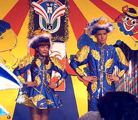 Den Hoppeditz tanzte bei der Sessionseröffnung des Neunkircher Karnevalausschusses (NKA) gekonnt das Aktivenfunkenmariechen Janine Held vom KUV Wiebelskirchen, die von Silvia Urschel (mehrfache Deutsche Meisterin) und Jenny Piro trainiert wird. Gleich im Anschluss sorgte der Fanfarenzug des KV Eulenspiegel mit seinen Pauken und Trompeten für die richtige Faasenachtsstimmung im Saal. NKA-Präsident Karl Albert begrüßte die Prominenz sowie das närrische Volk und führte schwungvoll durch das Programm. Das Aktivenmariechen Verena Wier von der KG Rote Funken, trainiert von Laura Ruffing, präsentierte meisterhaft ihren Marschtanz. Das bis dahin noch amtierende Prinzenpaar, Prinz Dirk I. und Prinzessin Gaby I. vom KV Die Daaler, und Prinzenmarschall Lothar Schmitt marschierten, begleitet von der Neunkircher Stadtkapelle und großem Beifall vom gemeinen Volk, auf die Bühne. Bevor sie ihre Insignien ablegten, hielten sie noch eine närrische Abschiedsrede und sangen ihren beliebten Prinzen-Song „Mit 55 Jahren“ zu Ehren der beiden Traditionsvereine „Rote Funken“ und „Neinkerjer Plätsch“. Das Publikum dankte es ihnen mit einem tosendem Beifall und Standing Ovation. Zum Abschied überreichte ihnen NKA-Präsident Karl Albert noch eine Erinnerungsurkunde und Blumen für die Prinzessin. Zu Ehren des Ex-Prinzenpaares tanzte im Anschluss das Juniorenmariechen Sabrina Schulter vom KV Die Daaler unter der Leitung von Trainerin Tatjana Paulus. Dann folgte der Aufruf des neuen Prinzenpaares Prinz Alexander II. und Prinzessin Melanie I. mit ihrem Prinzenmarschall Armin Müller. Der Sitzungspräsident der KG Rote Funken stellte den Karnevalisten das neue Prinzenpaar vor und wusste einiges über sie zu berichten. Prinzessin Melanie, mit bürgerlichem Namen Benz, ist ein waschechtes „Neinkerjer Mäde“ und liebt alles was glitzert. Nach dem Abitur verbrachte sie ein Jahr in New York City und ihr liebstes Fest war dort Halloween. Prinzessin Melanie I. arbeitet beim Fernsehen als Journalistin, wodurch sie viel im Land herumkommt. Prinz Alexander II., mit bürgerlichem Namen Müller-Benz, ist 1,96 Meter groß und bekannt durch die Rote Funken als „Lulatsch Lang“. Seit zwölf Jahren schon steht er in der Bütt. Sein Hang zur Neinkerjer Faasenacht wurde ihm schon in die Wiege gelegt, denn seine Urgroßeltern betrieben die Wirtschaft Kolpinghaus (heute Bürgerhaus), die schon immer die närrische Hochburg der Roten Funken war. Auch während seines Theologiestudiums stand er immer wieder in der Bütt der Roten Funken. Prinz Alexander II. und Prinzessin Melanie I. sind seit sieben Jahren ein Paar und haben zusammen zwecks Auslandsstudiums ein Jahr lang auf der grünen Insel Irland verbracht. Mittlerweile ist das Prinzenpaar in Hamburg sesshaft geworden. Der 11.11.2005 war für das Prinzenpaar ein ganz besonderer Tag, denn sie gaben sich um 11.11 Uhr auf dem Standesamt Neunkirchen vor dem Standesbeamten und Bürgermeister Jürgen Fried das Ja-Wort. Das hat es in der Neinkerjer Faasenacht noch nicht gegeben, morgens Hochzeit und abends Inthronisierung, das zeigt, wie stark das Prinzenpaar mit der fünften Jahreszeit verbunden ist. Nachdem das Prinzenpaar zur Inthronisierung ausmarschiert war, folgte der Mariechenschautanz von Fabienne Korb, Nadja Wellner und Vanessa Schmitt vom KV Eulenspiegel, die von Barbara Walter trainiert werden. Gleich zwei Jubiläumsvereine feiern in diesem Jahr 5 mal 11 Jahre und zwar die KG Neinkerjer Plätsch und KG Rote Funken. Ihre Vereinsgeschichte stellten in einer lustigen Büttenrede Hermann Frick und Josch Sieren vor. Karl Albert gratulierte den Jubiläumsvereinen im Namen des NKA recht herzlich. Das Aktiventanzpaar des KUV Nico Treitz und Jessica Lehmann, trainiert von Sylvia Urschel und Jenny Piro, tanzten zu Ehren der Jubiläumsvereine. Mit Ihrem Hofstaat marschierten Prinz Alexander II. und Prinzessin Melanie I. ein, um die Insignien in Empfang zu nehmen. Ausgestattet mit Diadem, Prinzenkette und Bozo hielten beide Ihre Antrittsrede in 11 Akten unter dem Motto „Von der Elbe bis zur Saar, vereint die Fasnacht jeden Narr“. Mit der gekonnt vorgetragenen Rede eroberten sie die Herzen der Narren im Sturm. Doch damit nicht genug, sangen sie noch ein Schunkellied mit Neinkerjer Faasenachtstext zur Melodie von „Auf der Reeperbahn nachts um halb eins“, welches die Stimmung im Saal auf den Höhepunkt brachte. Da sie an diesem Tag ihre standesamtliche Hochzeit feierten, kamen sie nicht umhin, auf der Bühne noch den Zillertaler Hochzeitsmarsch zu tanzen. Zu Ehren des neuen Prinzenpaares tanzte die Aktivengarde der KG Rote Funken, die von Laura Ruffing trainiert wird. Im Anschluss folgten noch der Tanz des Juniorenmariechens Nathalie Bungert vom KV Die Daaler, deren Trainerin Lisa Thobae ist, und der Gardetanz der Juniorengarde des KUV Wiebelskirchen, die wie alle anderen das ganze Jahr über mit ihren Trainerinnen Steffi Schmitt-Schulz und Tanja Sielemann, geübt hatten. Die Promillos des KKW unter der Leitung von Georg Lieblang beendeten das Programm mit einigen ihrer beliebten und bekannten Liedern. |